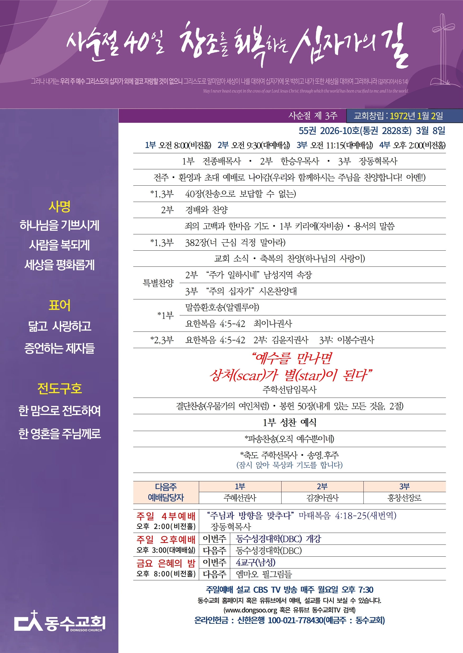 2. “창조를 회복하는 십자가의 길”을 묵상합니다. “2026 동수교회 사순절의 깊은 묵상”에