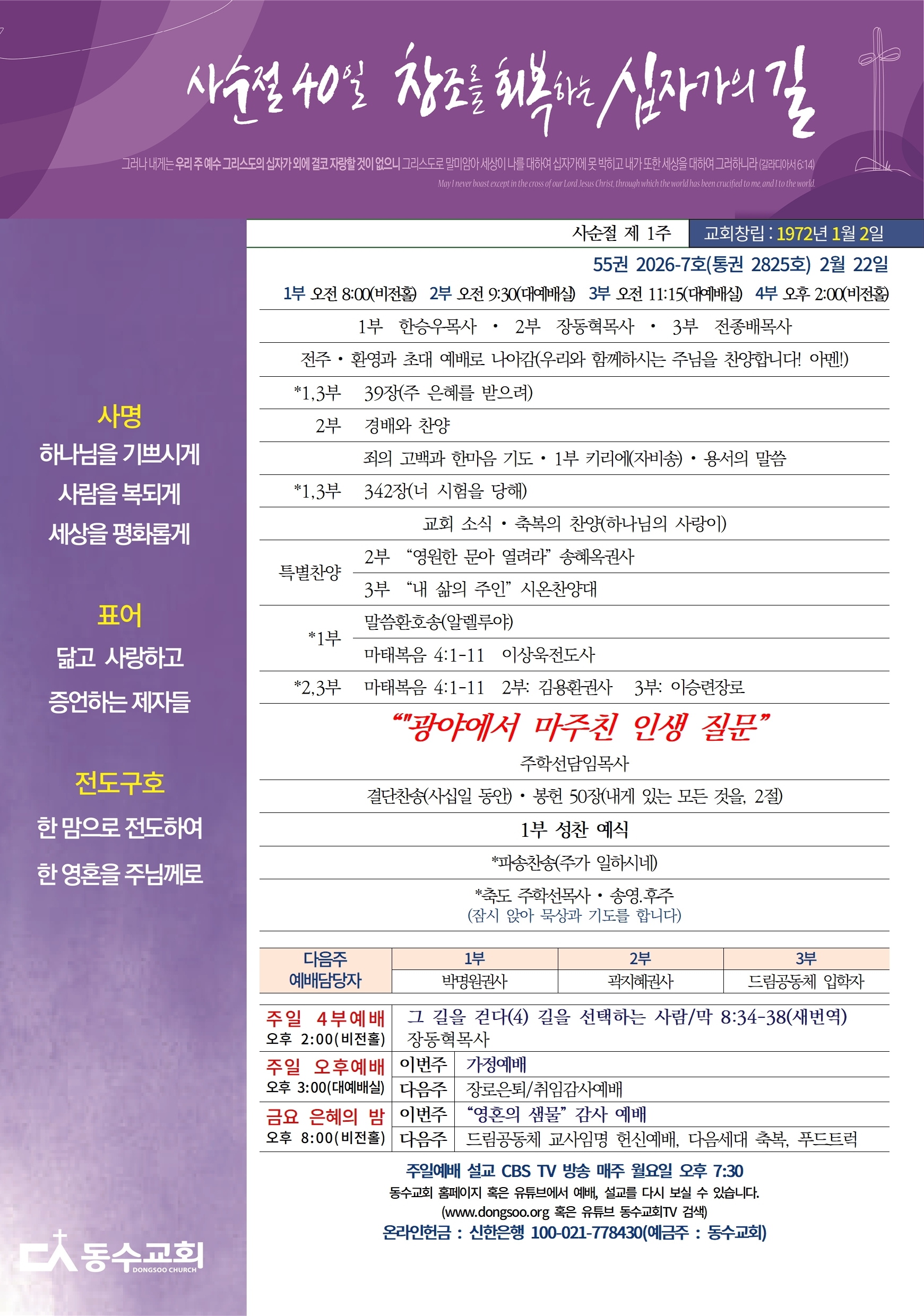 동수교회 유튜브에서만 방송됩니다. 그동안 함께 올렸던 담임목사님의 유튜브에는 더 이상 올리지 않습니다.