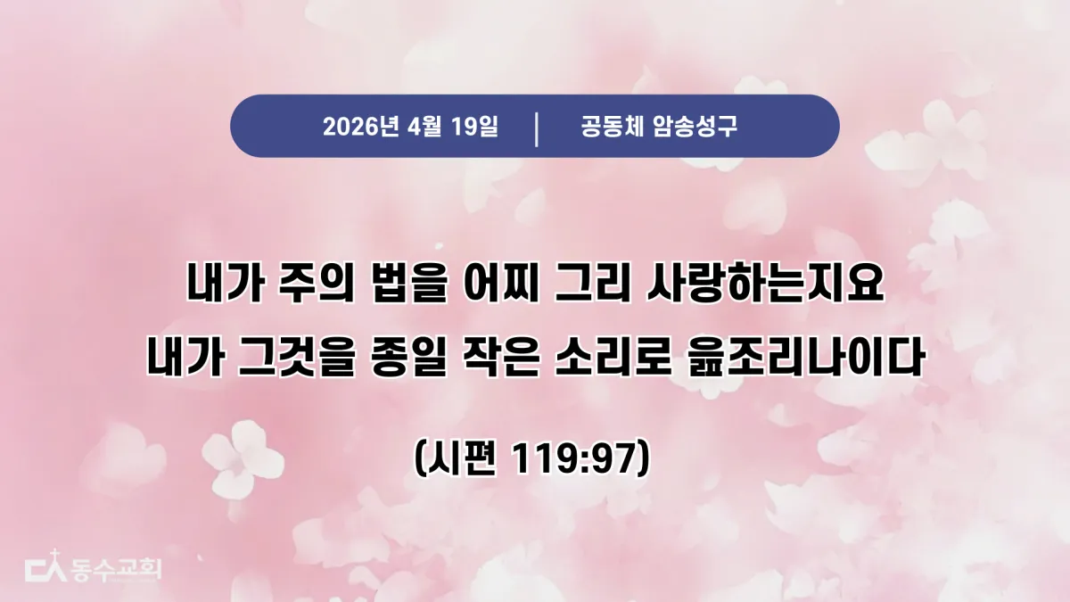 7. 금주의 암송구절 : 내가 주의 법을 어찌 그리 사랑하는지요 내가 그것을 종일 작은 소리로 읊조리나이다(시편 119:97)