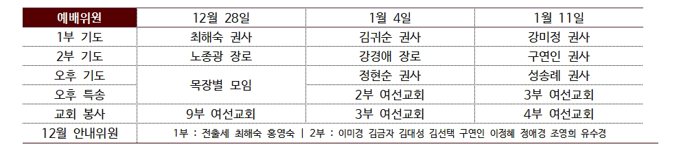 ❶ 2025년 12/28(주일) 1시, 대예배실
