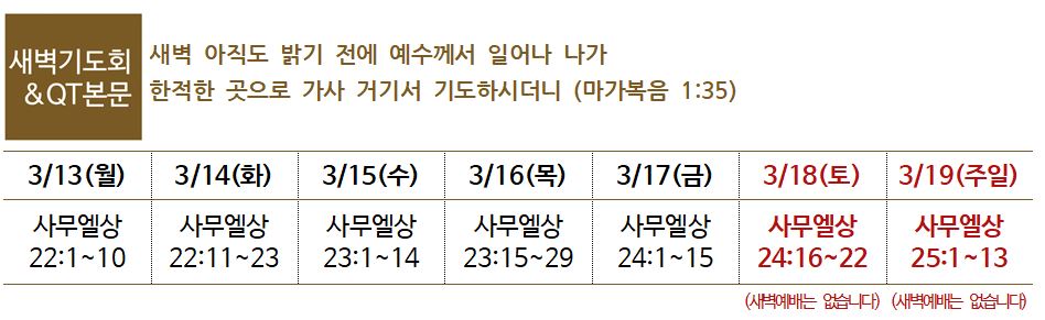 (사순절 기간 말씀과 기도와 금식을 힘씁니다. 사순절 묵상집인 ‘다시 근본으로’를 매일 읽고