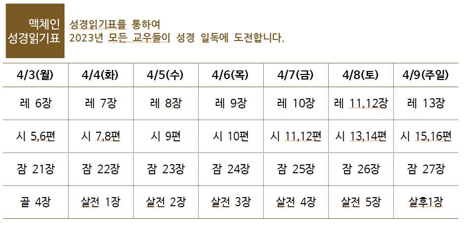 3. 4월 한 달도 신실하신 주님이 나라와 교회와 가정과 일터를 든든히 붙잡아 주시고, 우리가 제사장 나라의 사명을 잘 감당하기 원합니다.