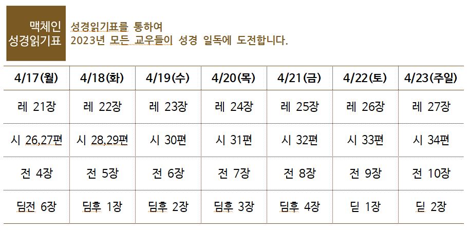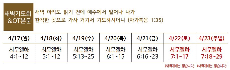 2. 4월 한 달도 신실하신 주님이 나라와 교회와 가정과 일터를 든든히 붙잡아 주시고, 우리가 제사장 나라의 사명을 잘 감당하기 원합니다.
