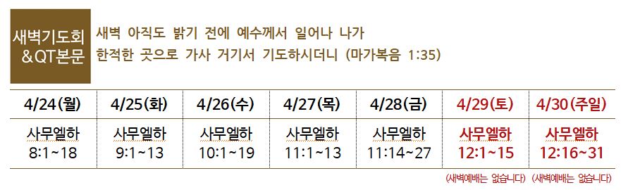 (2024. 1. 28.(주일)~2. 3(토), 문의 : 조은희전도사)