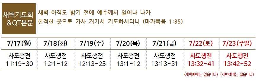 | 오후특송 | 제자훈련 7~10기 | 다음세대 교사 | |