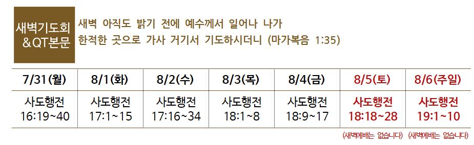❷ 8월 월삭(초하루) 특별새벽기도회 : 8. 1(화) 오전 5:00
