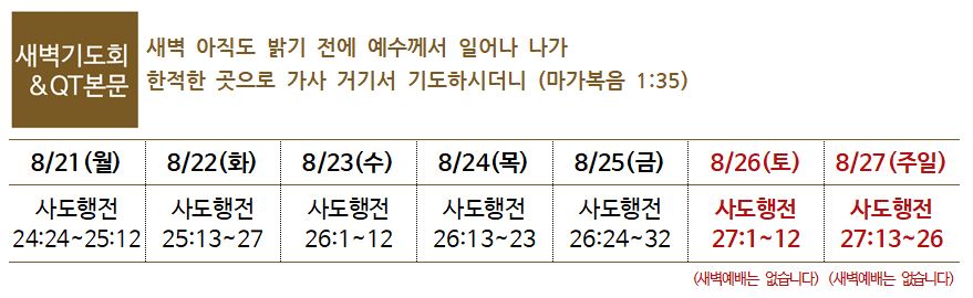 | 8월 27일 | 9월 3일 | 9월 10일 | |