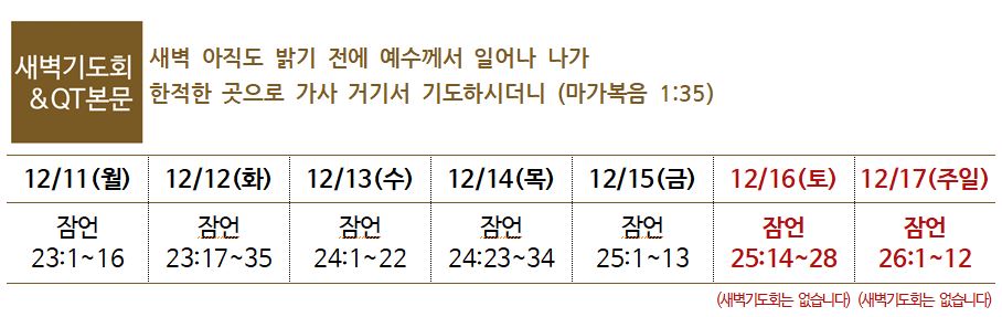 2. 12월 한 달도 일상생활 속에서 하나님을 체험하며 간증이 넘치게 도와주십시오.