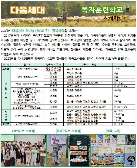 8. 교사 모집 : 다음세대를 섬겨주실 교사를 모집합니다. (문의 : 이수용 장로 010-8808-3927)