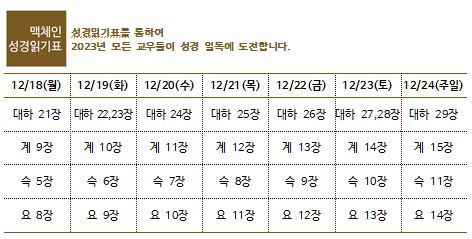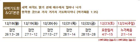 | 12월 24일 | 12월 31일 | 1월 7일 | |