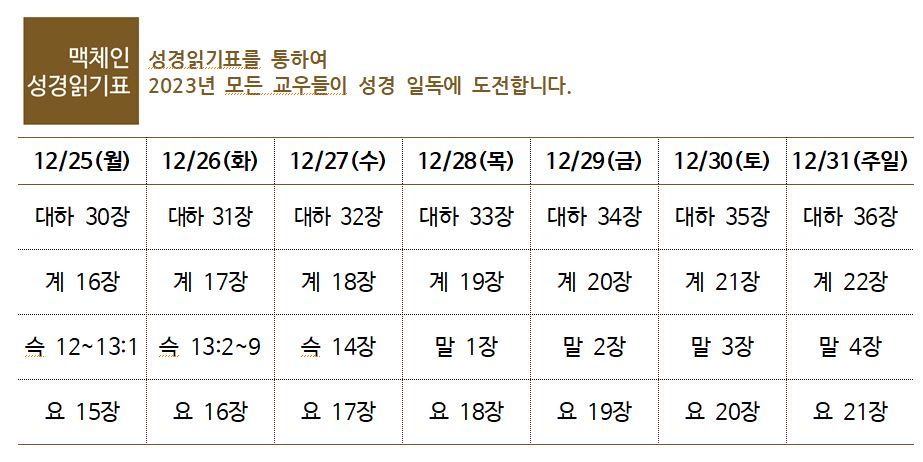 1. 2023년에 선하고 인자하신 하나님의 은혜가 우리교회와 각 가정과 일터에 임하시기를 축복합니다.