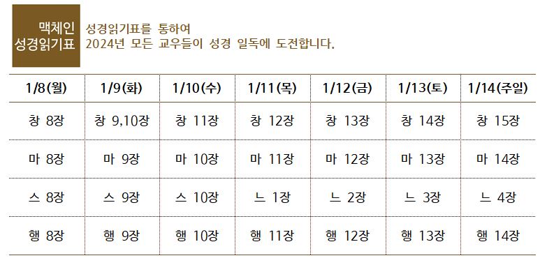 ❷ 사경회 : 2024. 1.15(월)~17(수) 오전 10:00~12:00, 오후 7:30, 소명교회