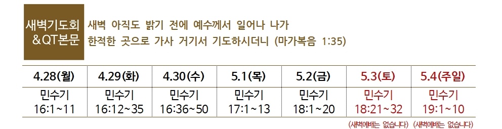 ❷ 5월 새날(월삭) ‘3대가 함께 드리는 예배’ : 5.1(목) 오전 5:00