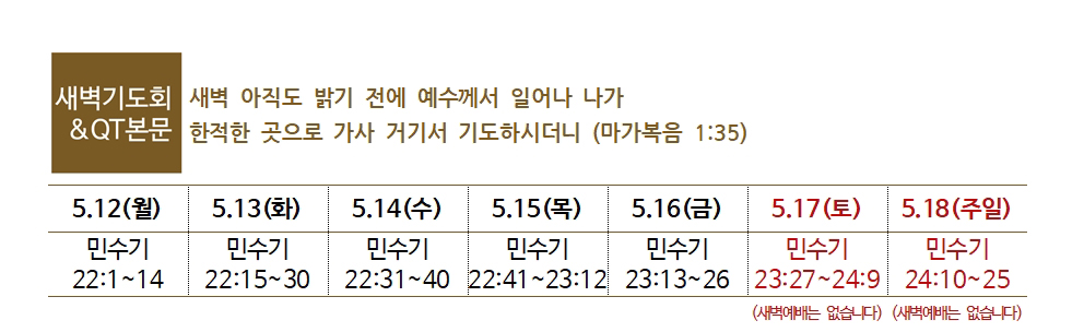 - 일시 : 5.25(주일)~28(수) [25(주일) 오후 2:00, 26(월)~28(수) 오후 7:30]