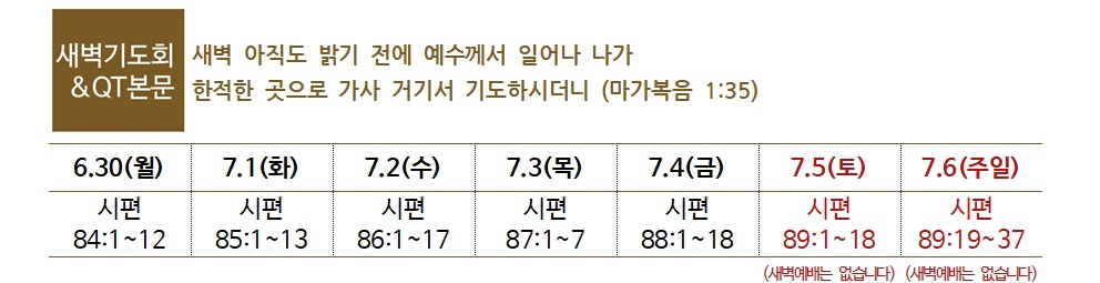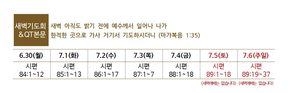 ❷ 7월 새날(월삭) 기도회 : 7.1(화) 오전 5:00. (주체 : 다음세대 교사)