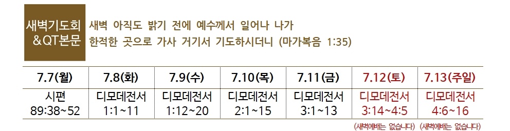 6. 기도센터 수양회 : 7.12(토) 강화 선교중앙교회 수양관에서 있습니다. 기도센터팀 전 팀원이