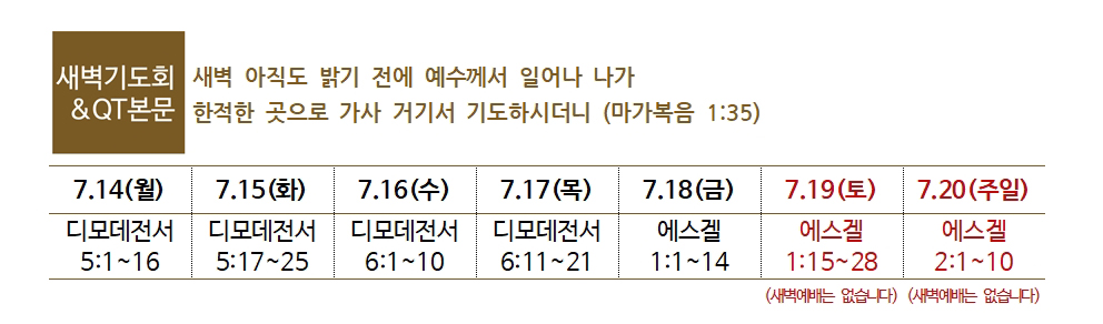 - 기간 : 7.14(월) 17:15 ~ 7.19(토) 6:05. (교회에서 오후 1시 출발)
