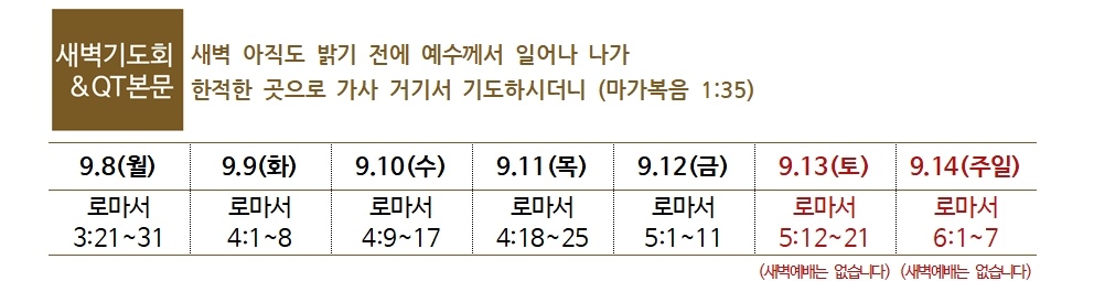 1. 9월에 우리의 신앙이 성장하고, 가정과 일터와 나라와 세계에 하나님의 평강이 흘러가기를 원합니다.