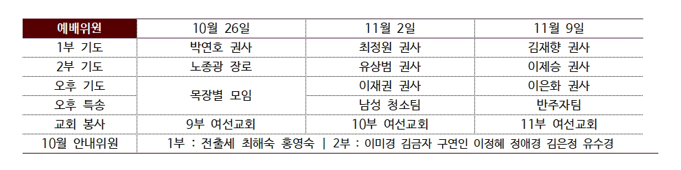 1. “하나님, 10월 한 달도 우리 가정, 일터, 교회, 우리나라를 질서 있게 세워주십시오”