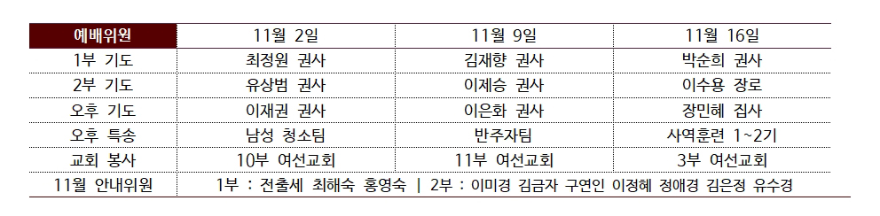 11. 온 세대 찬양축제 : 11.16(추수감사주일) 오후 2:00에 있습니다.