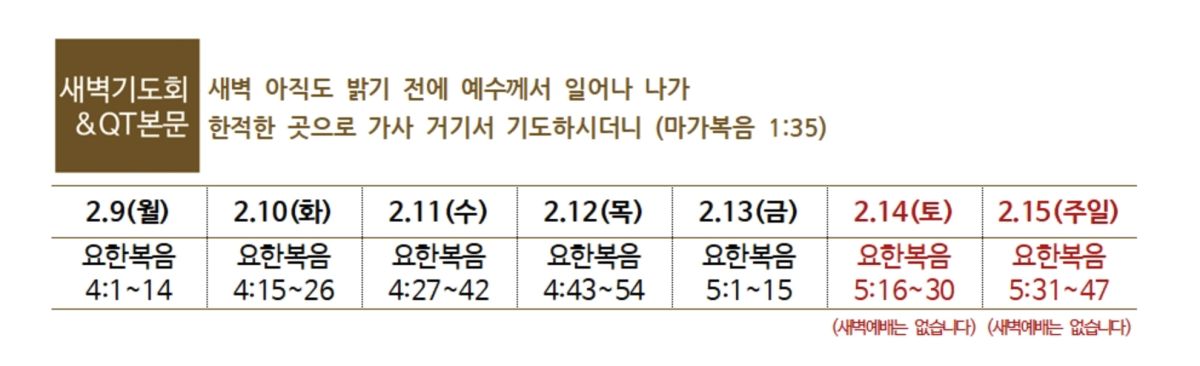 9. 사순절 특별새벽기도회 : 2.23(월)~4.3(금)