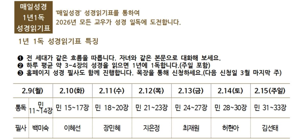 1. 2026년에 선하고 인자하신 하나님의 은혜가 우리교회와 각 가정과 일터에 임하시기를 축복합니다.