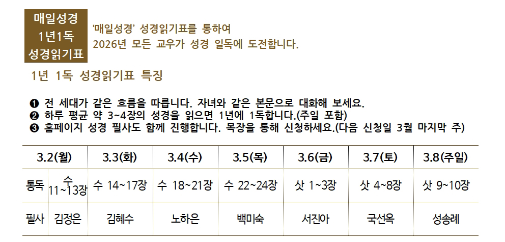 1. 2026년에 선하고 인자하신 하나님의 은혜가 우리교회와 각 가정과 일터에 임하시기를 축복합니다.