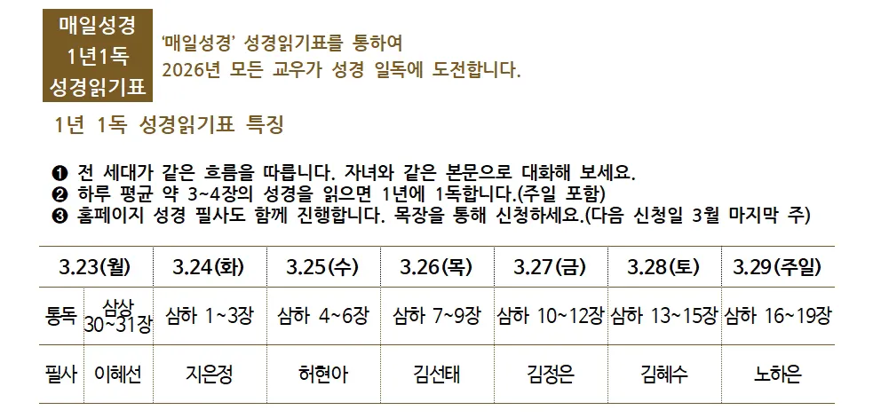 7. 성경일독학교(어성경 구약) 7기생 모집 : 4월부터 시작합니다. * 게시판에 신청하십시오.