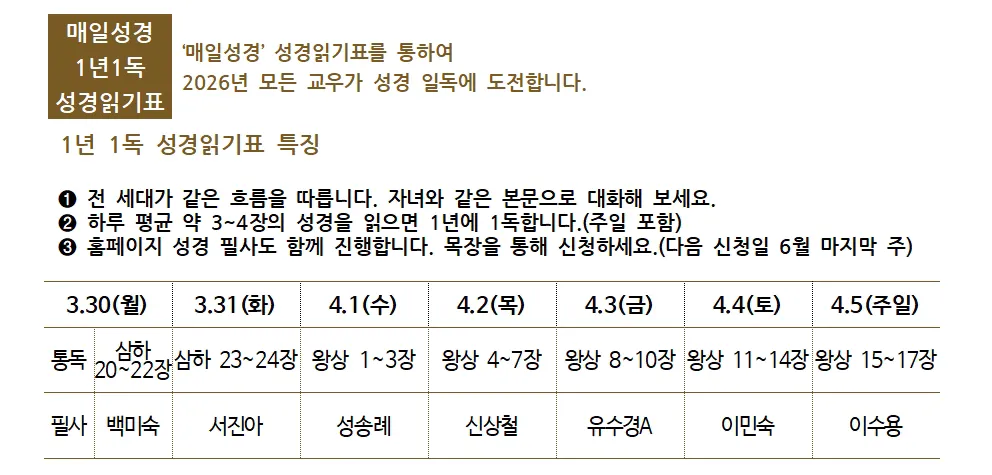 1. 2026년에 선하고 인자하신 하나님의 은혜가 우리교회와 각 가정과 일터에 임하시기를 축복합니다.