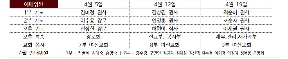 4. 부활주일 세례식 : 다음 주일 오후예배 시간(오후 2:00)에 있습니다.