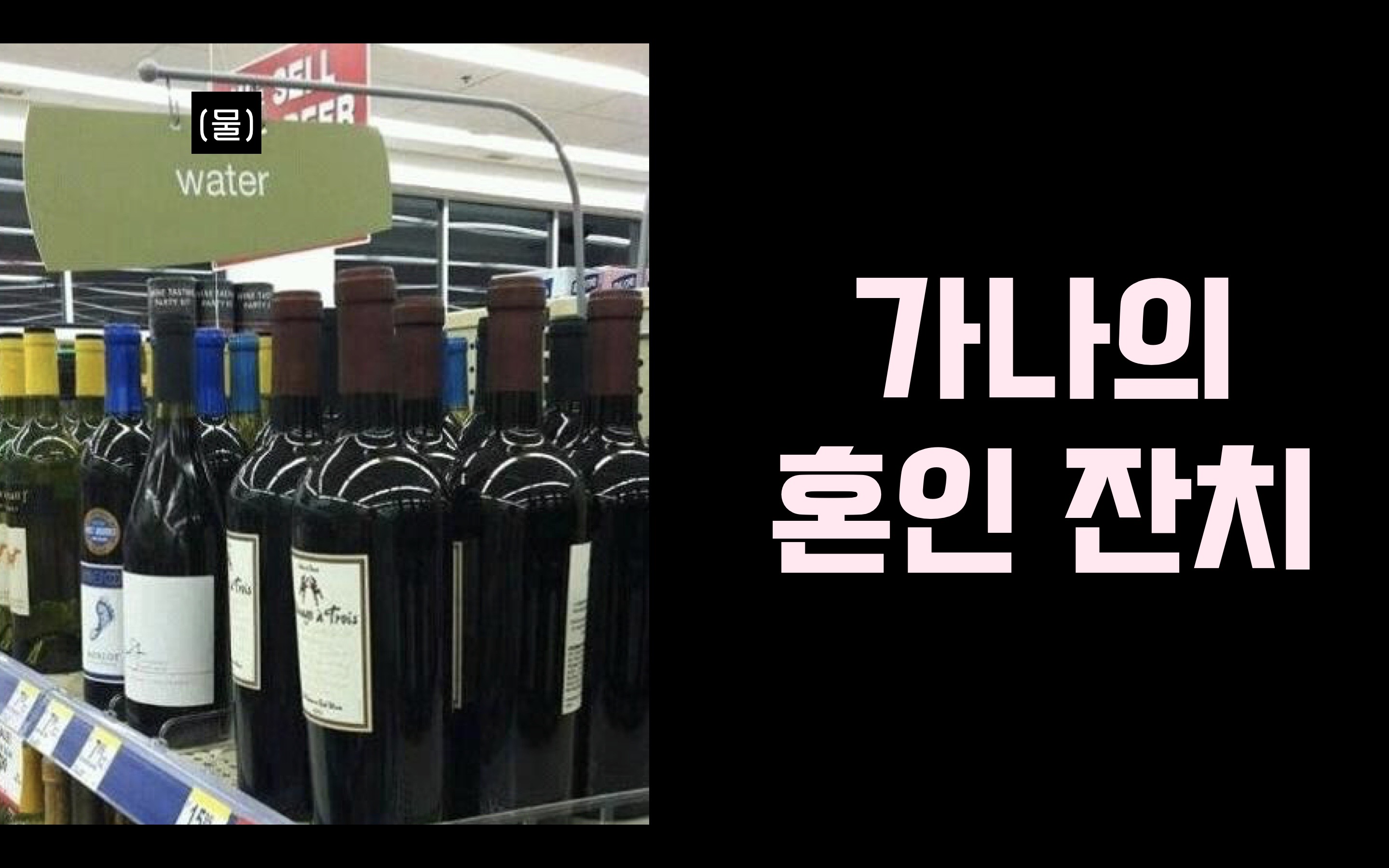 1. 사흘째 되는 날에 갈릴리 가나에 혼인 잔치가 있었다. 예수의 어머니가 거기에 계셨고,
