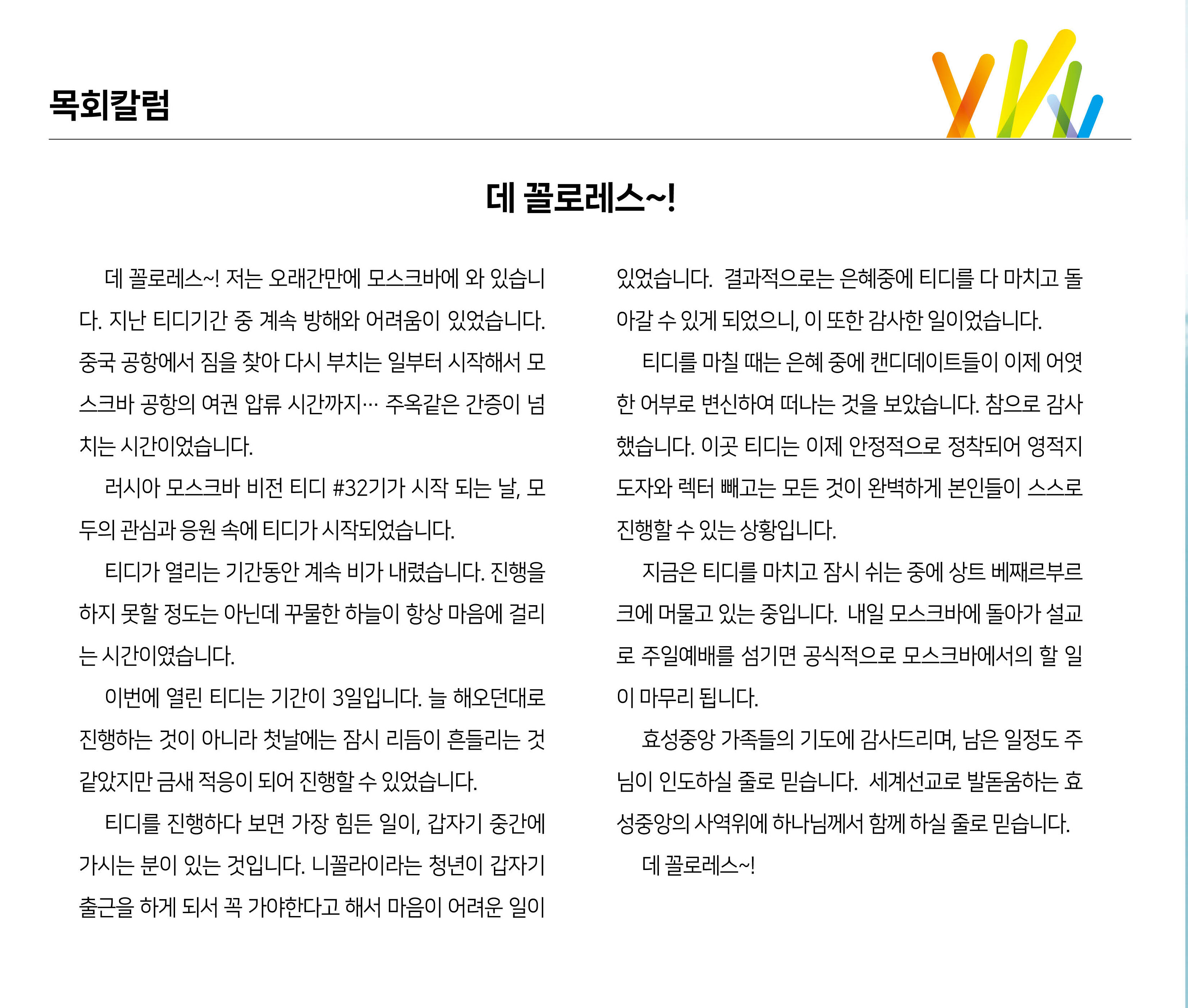 기도 : 라필례 권사 ㅣ 특송 : 관리국&재무국