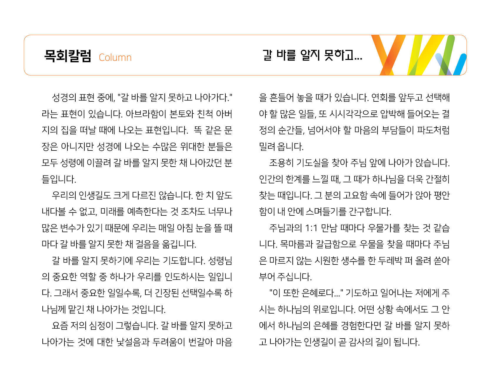 기도 : (오전) 임옥희 집사 / (오후) 윤선자 집사