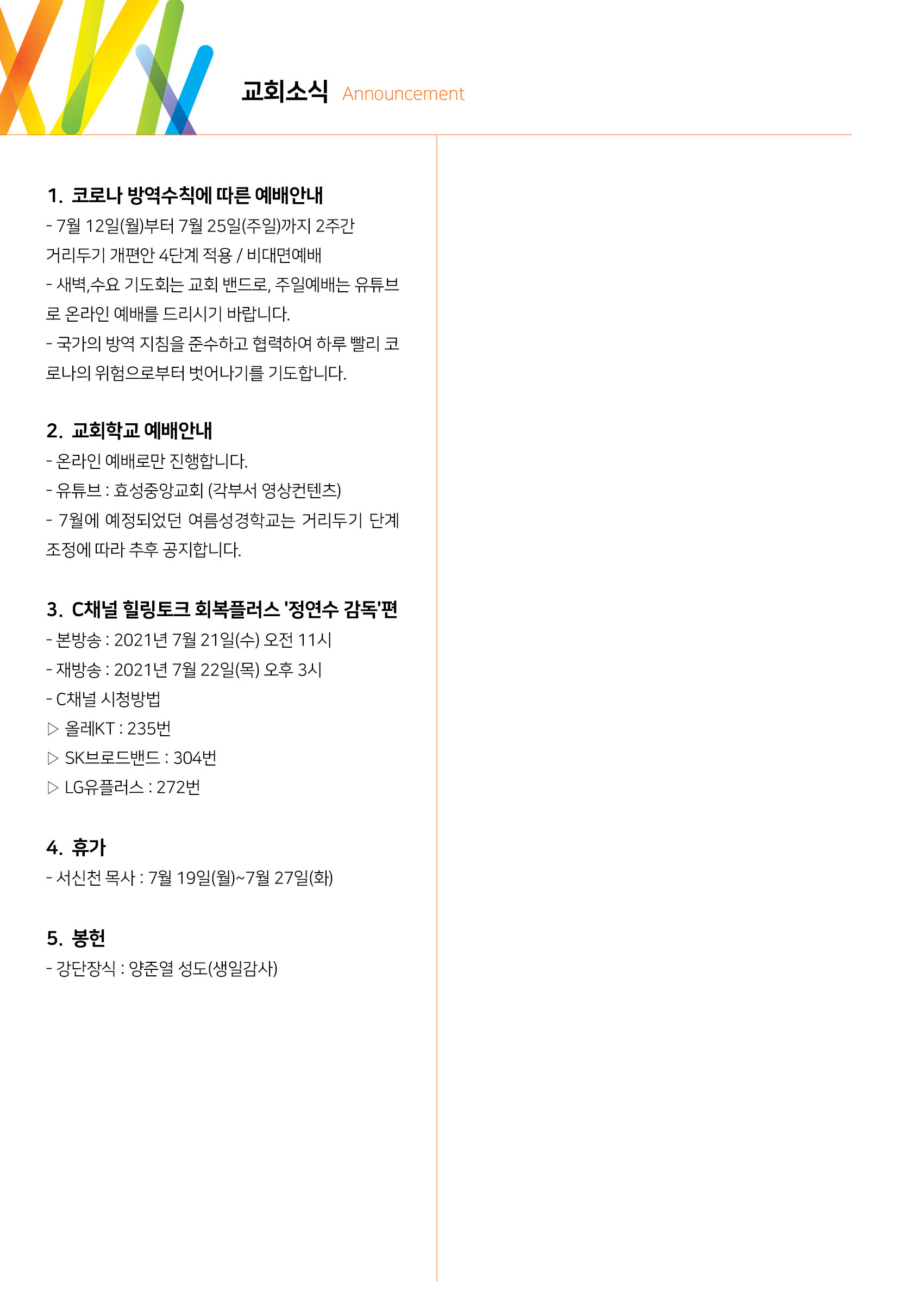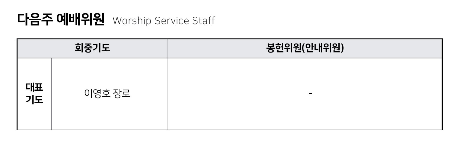 - 비대면예배(온라인예배) 전환으로 금요기도회는 모이지 않습니다.