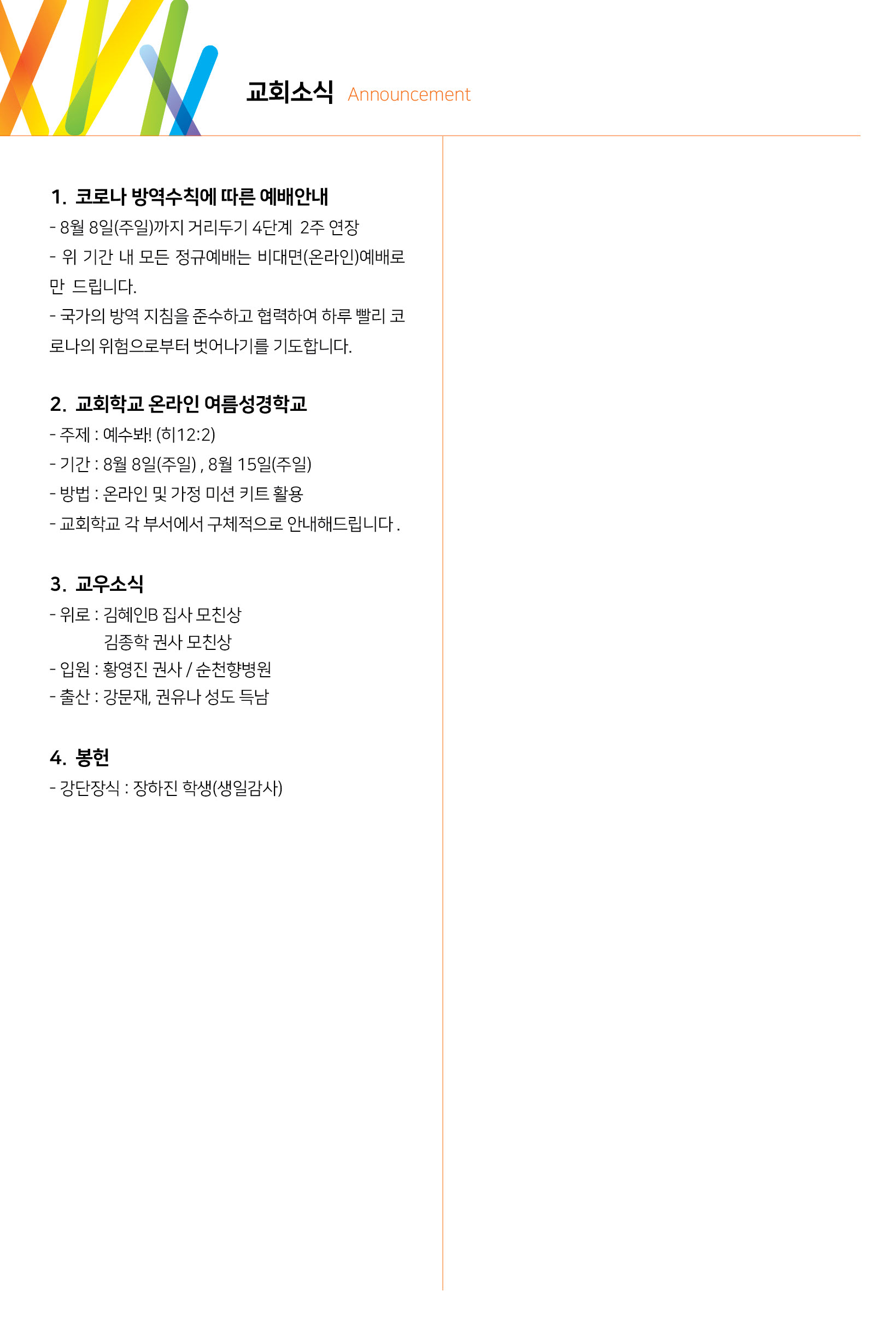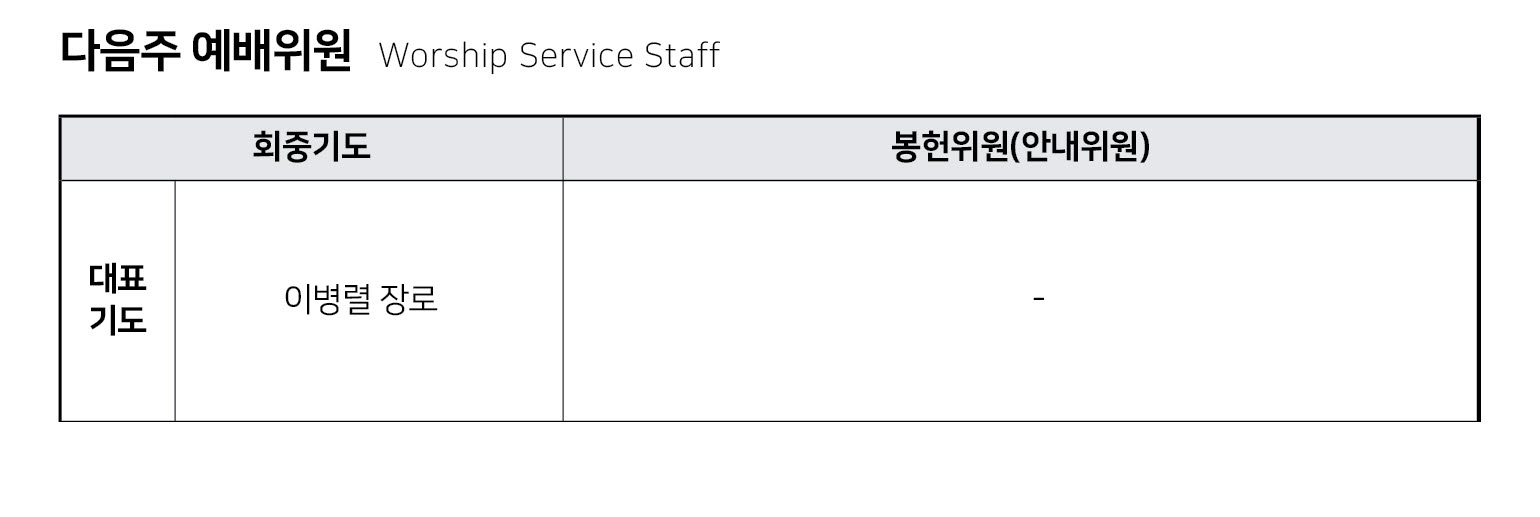 - 비대면예배(온라인예배) 전환으로 금요기도회는 모이지 않습니다.