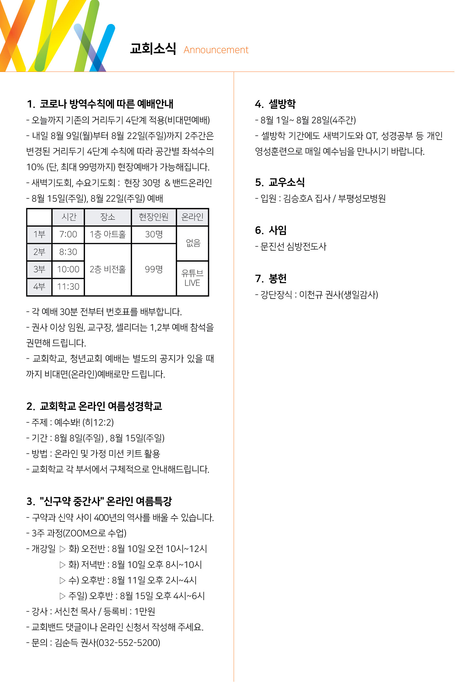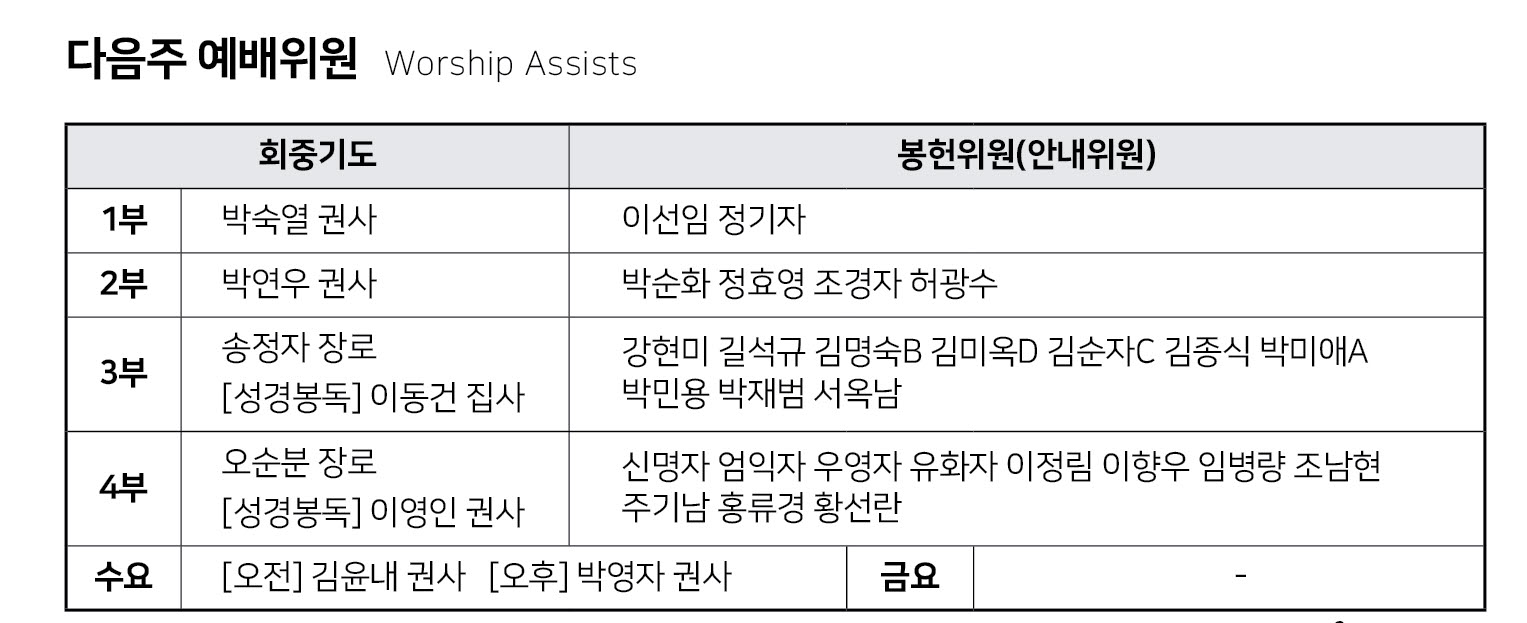 기도 : (오전) 부해숙 권사 / (오후) 구점회 권사