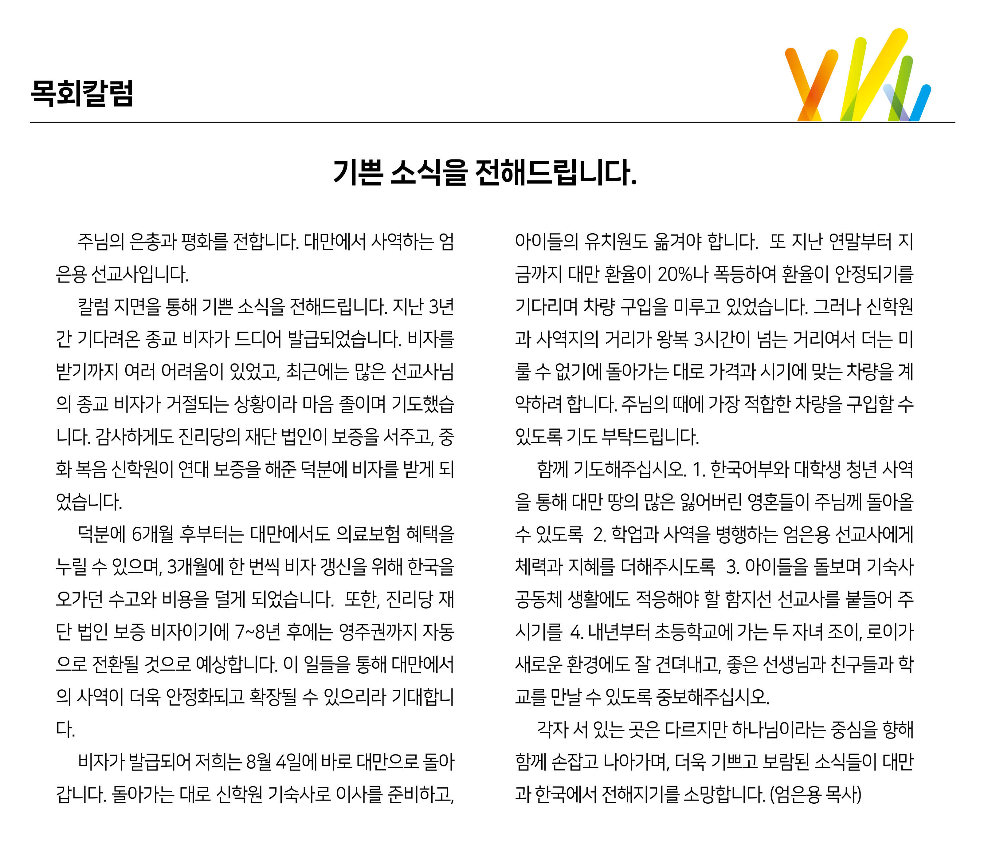 이름과 이메일을 등록하시면 주보가 발행될 때 미리 이메일로 보내드립니다.