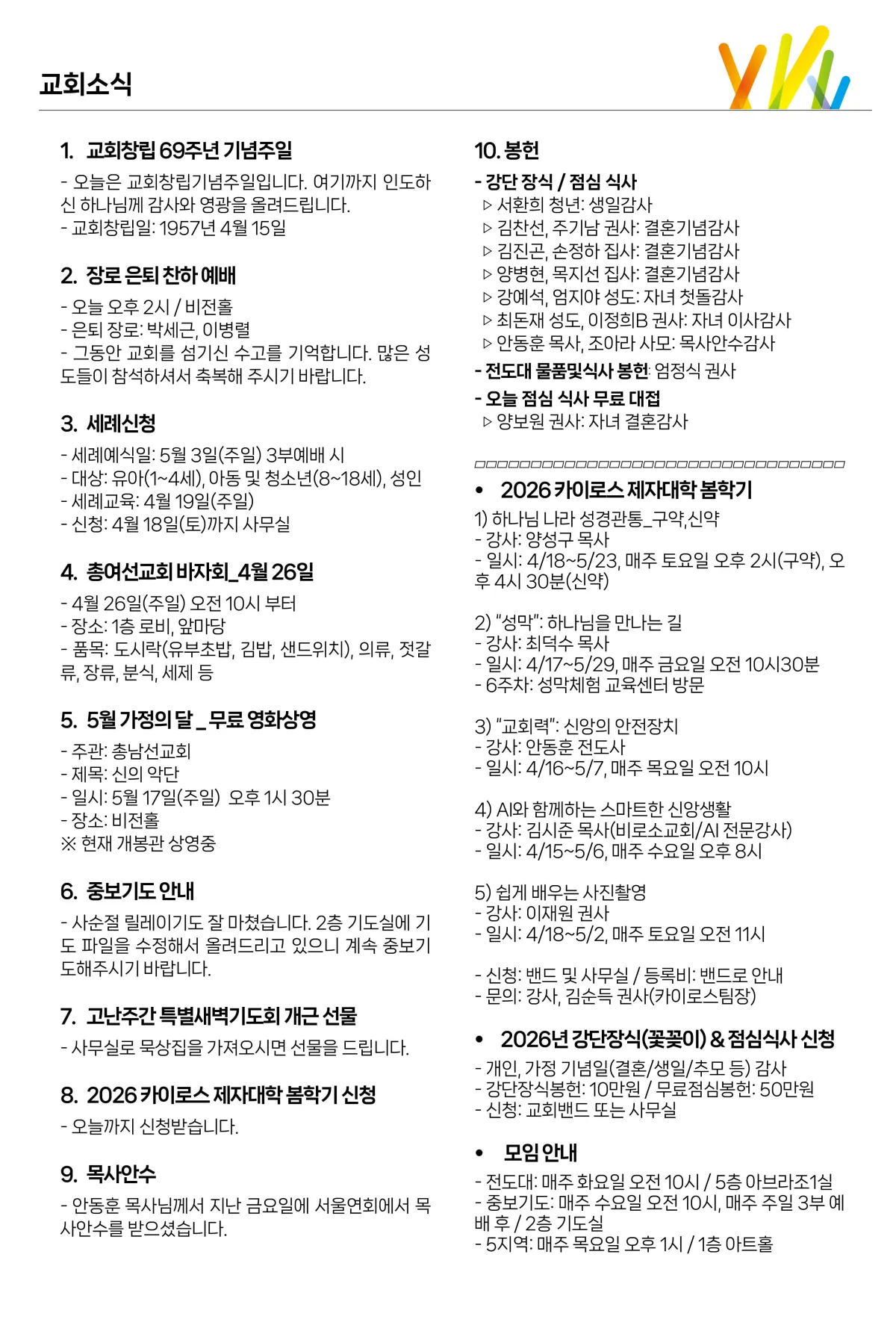 이름과 이메일을 등록하시면 주보가 발행될 때 미리 이메일로 보내드립니다.