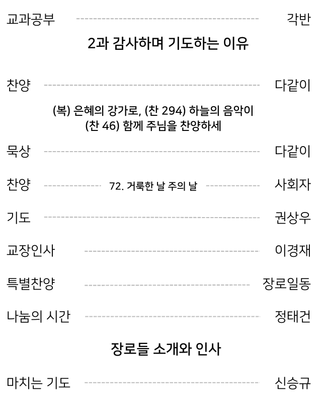 교과공부(9am 각반), 안식일학교 (9:50am)