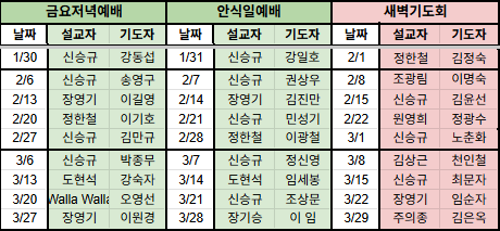 2월 7일 안식일 송황순 박사님의 특별한 순서와 함께