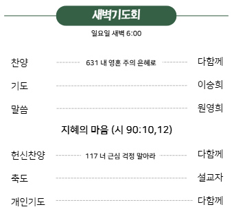 오늘 오후 2:30, 찬양대실