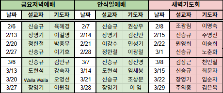 예배 배정표