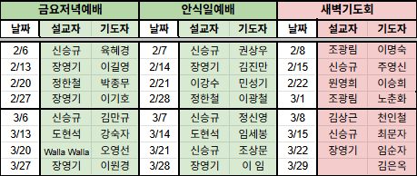 금요일: 3월6, 13, 20, 27일 오전 10시-12시