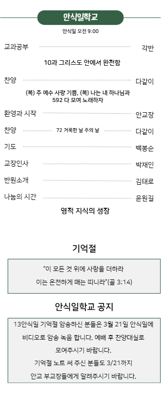 안식일 오전 10시 30분