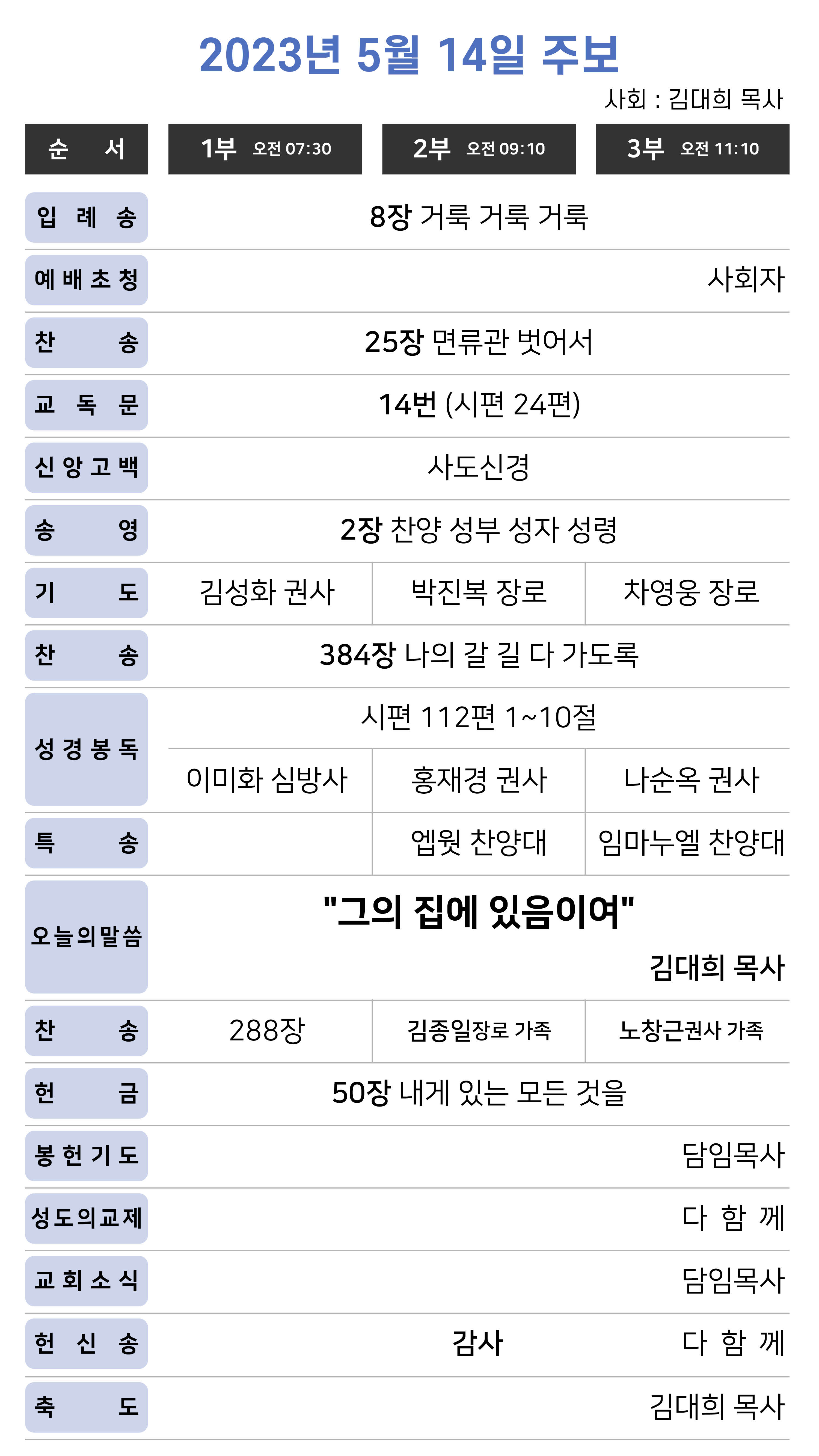 오후 7시 30분 | 사회 : 김대희 목사