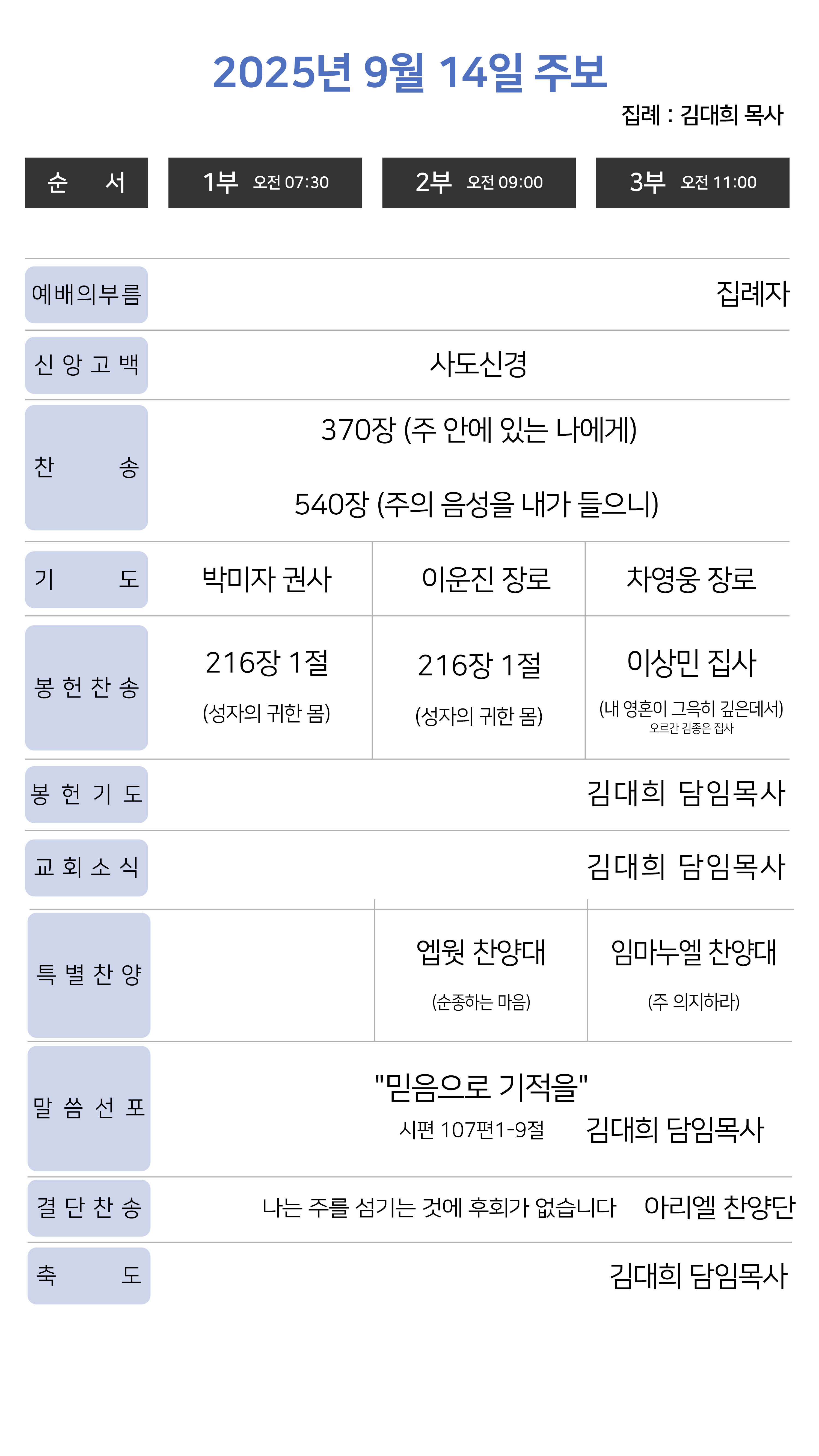 123) | 김희주 | 집사 | 24여선교회 | 김희란 집사(22여선교회) 이은지 청년 |