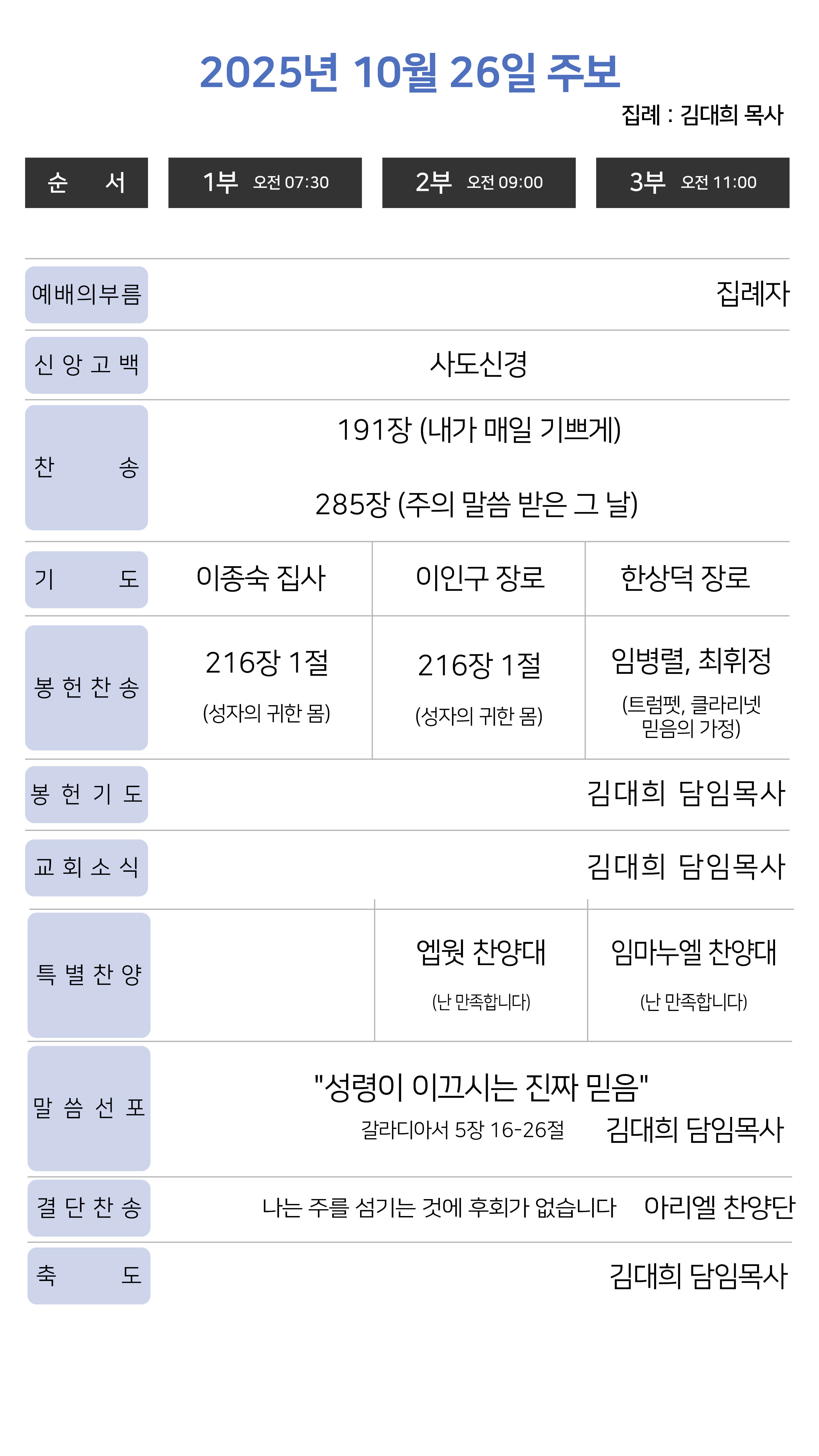 오후 7시 30분 | 집례 : 김대희 목사