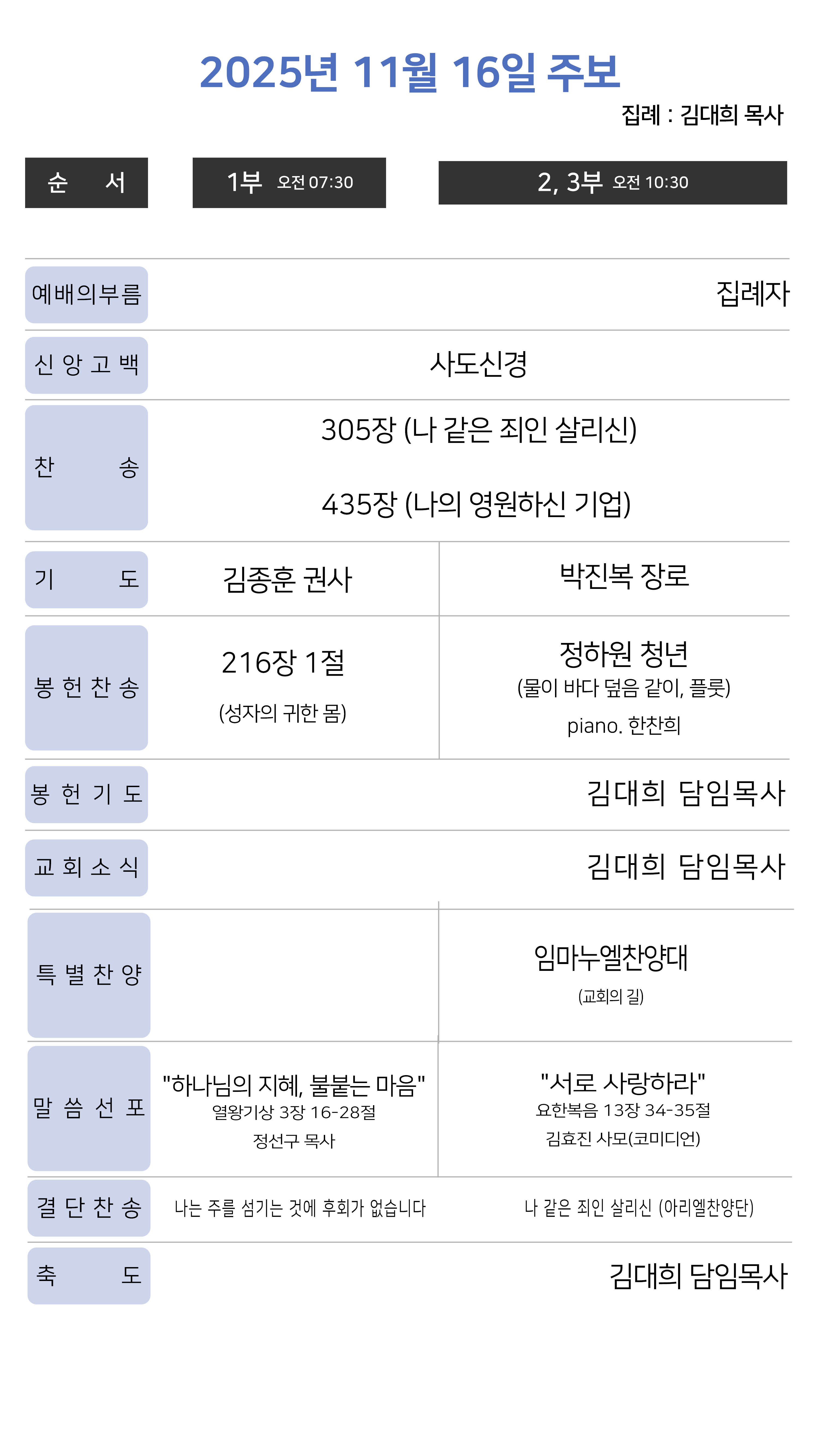 오후 7시 30분 | 집례 : 김대희 목사