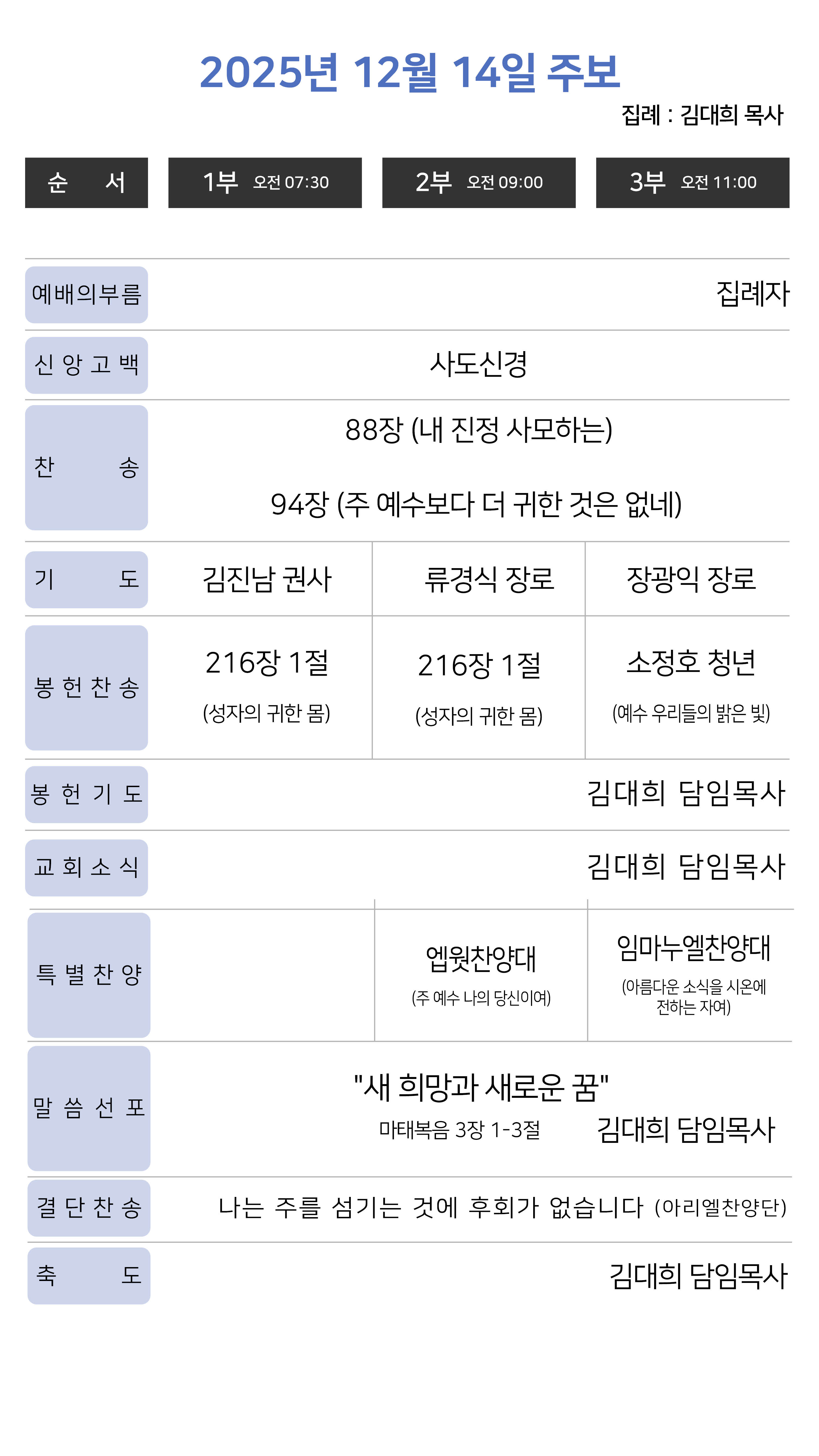 ♧ 2025 정기당회 : 12.21(주일) 3부 예배 후 대예배실에서 모입니다.