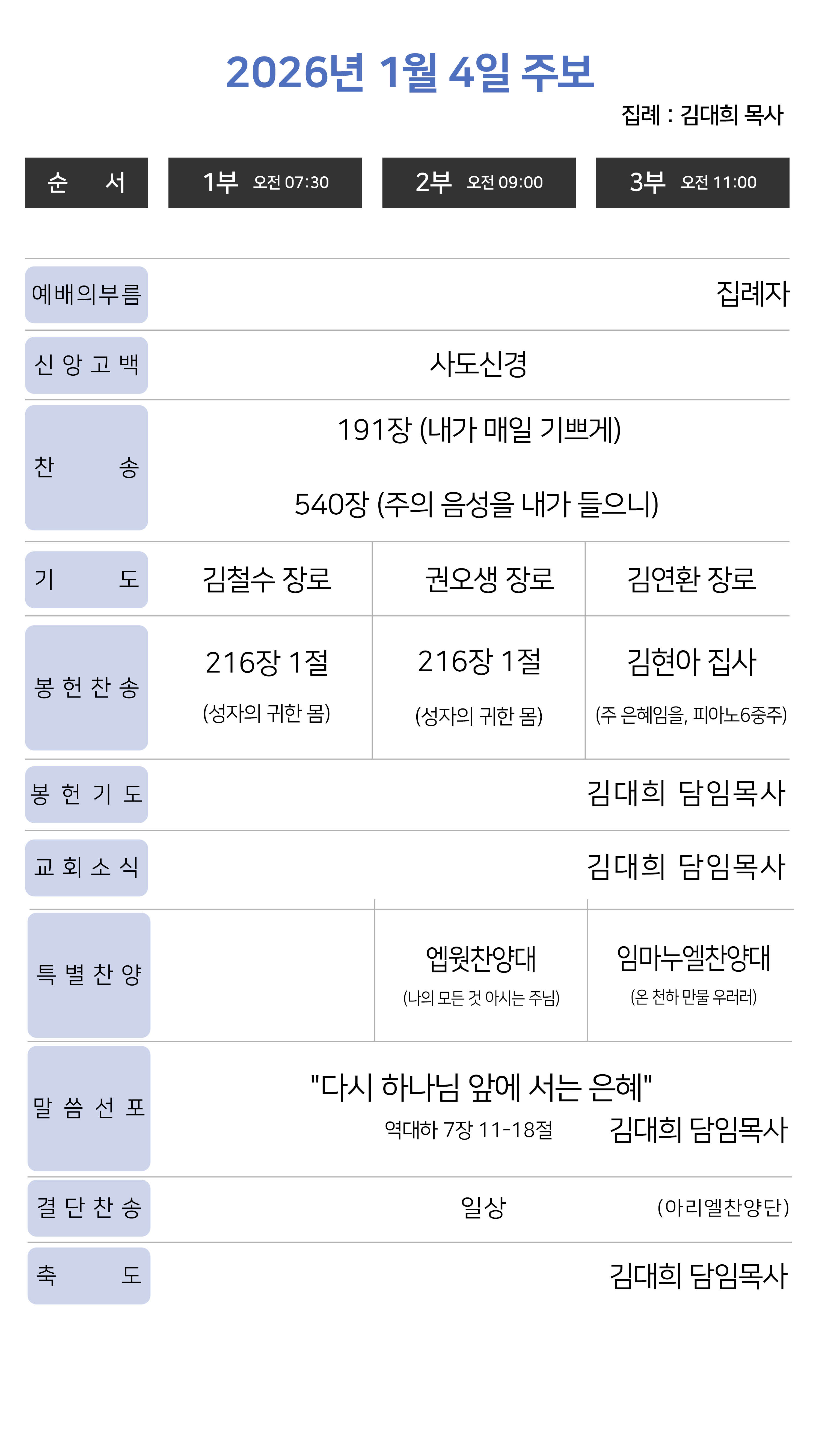 ♧ 2026 신천 임원 교육 - 1.18 / 25 (2주간) 주일 오후 1시